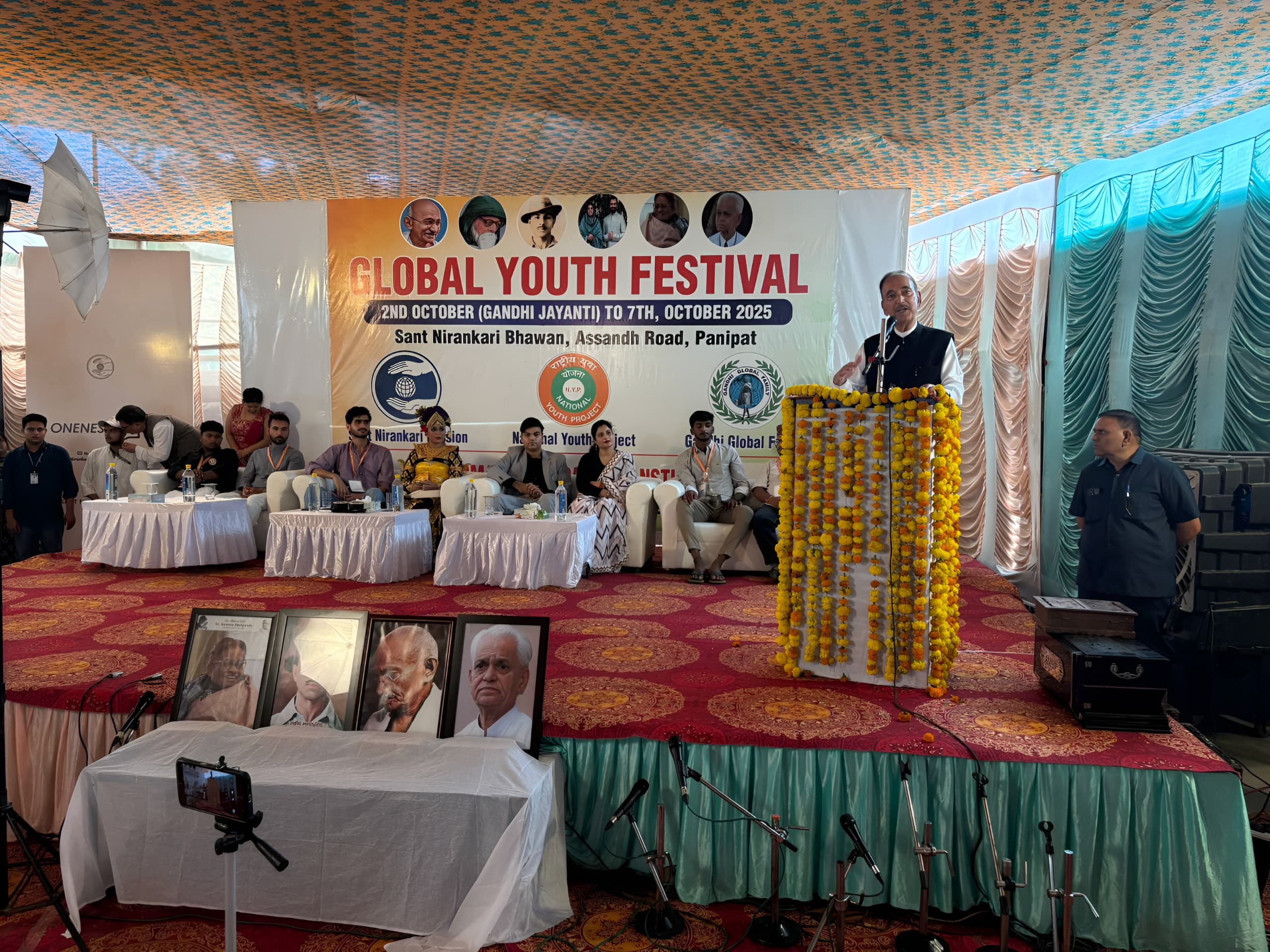 लाम मजाहिदपुर। “अहिंसा, शांति एवं सर्वधर्म समभाव” जैसे महात्मा गांधी के शाश्वत आदर्शों को युवा पीढ़ी तक पहुँचाने तथा वैश्विक एकता की भावना को सुदृढ़ करने के उद्देश्य से गांधी ग्लोबल फैमिली (जीजीएफ), नेशनल यूथ प्रोजेक्ट (एनवाईपी) एवं संत निरंकारी मिशन (एसएनएम) के संयुक्त तत्वावधान में 2 अक्टूबर से 7 अक्टूबर 2025 तक संत निरंकारी सत्संग भवन, असंध रोड, पानीपत में “वैश्विक युवा महोत्सव 2025” का भव्य एवं ऐतिहासिक आयोजन किया गया। इस सात दिवसीय अंतरराष्ट्रीय महोत्सव में भारत सहित विभिन्न देशों से लगभग 400 युवा प्रतिनिधियों ने सक्रिय सहभागिता की, जिससे यह आयोजन विचारों, सांस्कृतिक आदान-प्रदान और मानवता के संदेश का एक सशक्त मंच बनकर उभरा।