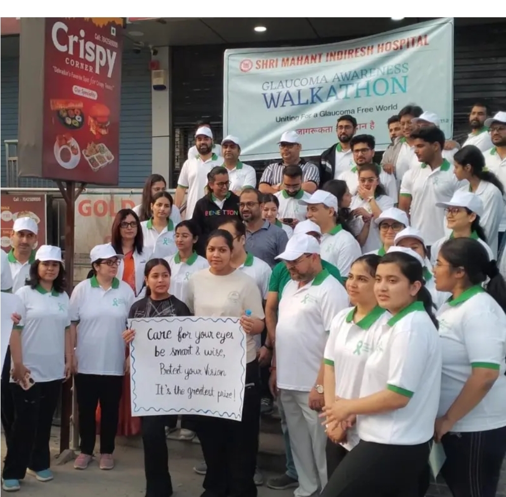 देहरादून। श्री गुरु राम राय विश्वविद्यालय एवं श्री महंत इन्दिरेश अस्पताल के नेत्र विभाग के द्वारा 8 मार्च रविवार को विश्व ग्लूकोमा सप्ताह (8 से 14 मार्च ) के अवसर पर जन जागरूकता अभियान चलाया गया। इस अवसर पर श्री महंत इन्दिरेश अस्पताल के नेत्र रोग विभाग ने वॉकाथॉन का आयोजन किया । इस कार्यक्रम में डाॅक्टरों, मेडिकल छात्र-छात्राओं एवं अस्पताल के कर्मचारियों ने उत्साहपूर्वक भाग लिया और ग्लूकोमा से बचाव का संदेश दिया। वाॅकथाॅन के दौरान छात्र-छात्राओं ने हाथों में तख्तियों में लिखे सलेग्नों के माध्यम से जनजागरूकता की अलख जगाई। उन्होनें हाथों मंें ली तख्तियों में लिखे संदशों समय समय पर नेत्र जांच करवाएं, काला मोतिया से आँखों को बचाएं। नियमित जांच का लें संकल्प, ग्लूकोमा से बचाव होगा सरल विकल्प, धूंधला दिखे या दर्द हो जाए, तुरंत नेत्र चिकित्सक से जांच कराएं के माध्यम से आमजन को ग्लूकोमा के स्याह पक्ष से अवगत कराया।